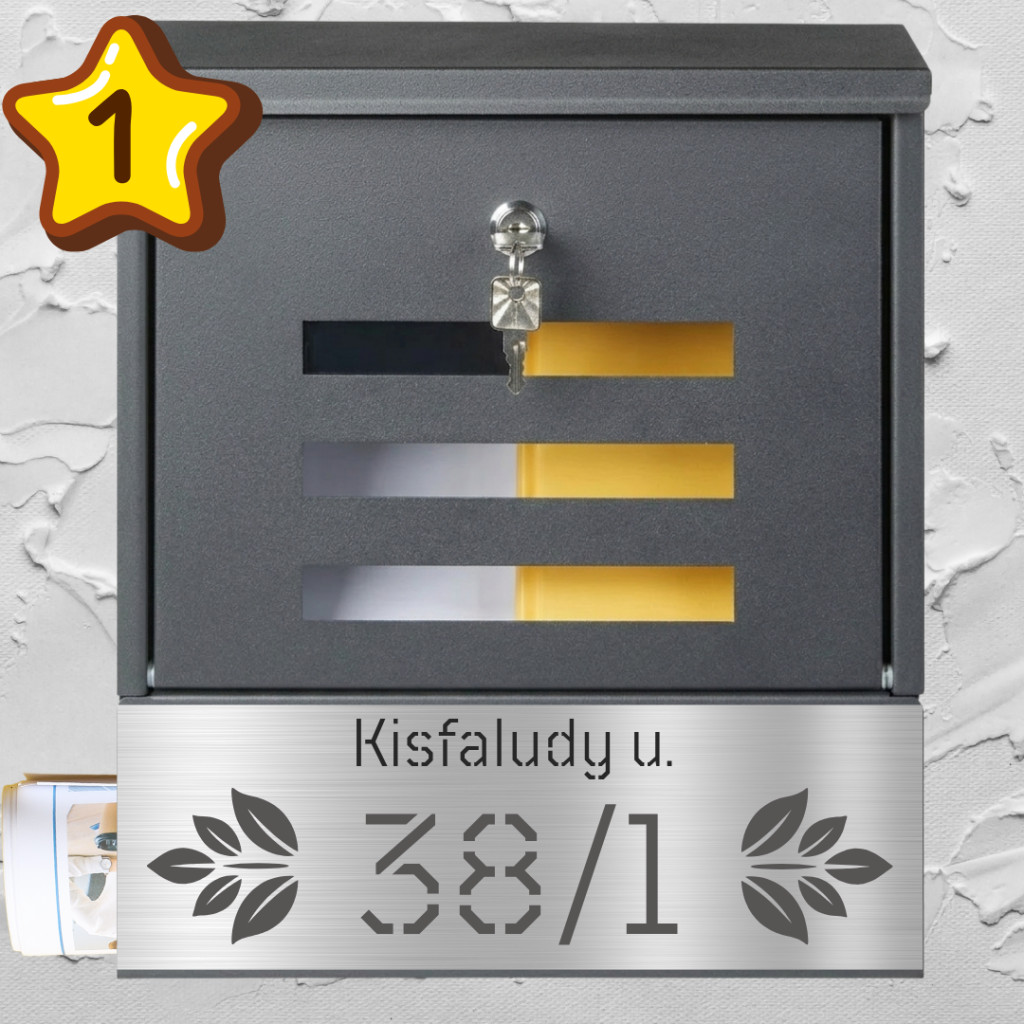 Szeretné, ha postaládája nemcsak praktikus, de otthona dísze is lenne? Modern antracit postaládánk most még több lehetőséget kínál a személyre szabásra! A precíz, lézervágott utcanév és házszám mellé most Ön választhatja ki a stílusához legjobban illő dekorációs motívumot, amely a felirat két oldalát díszíti majd.