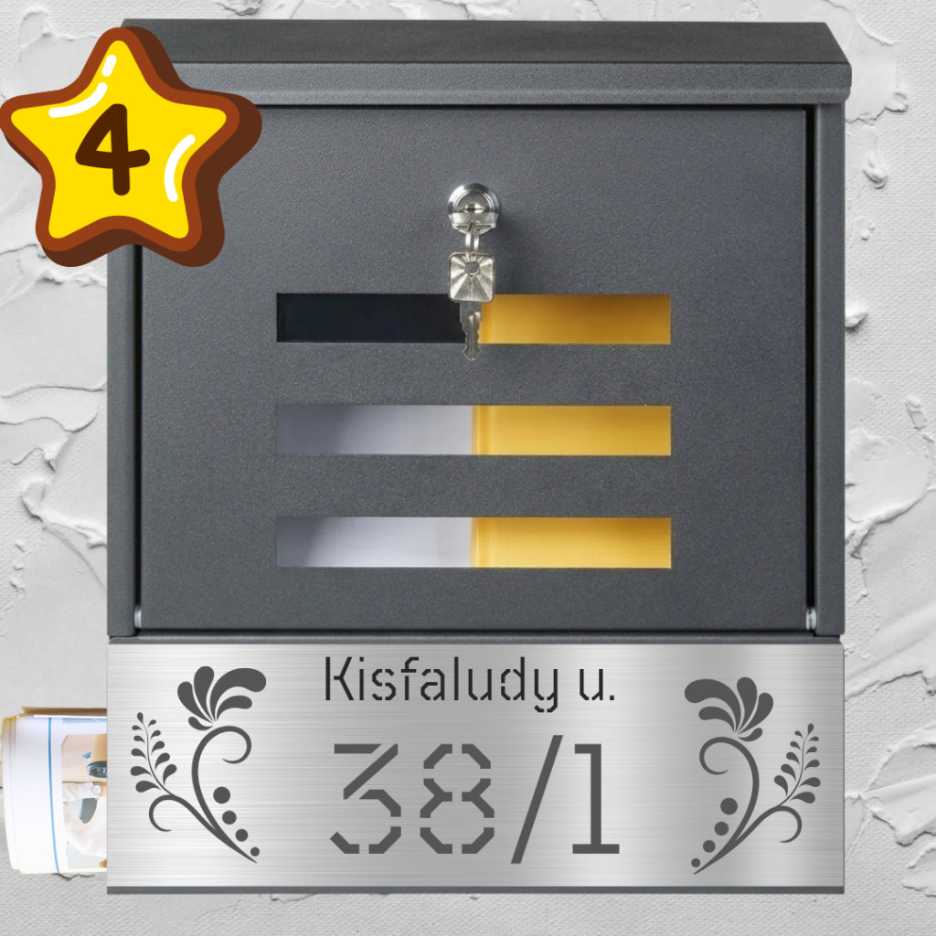 Nagy betűk, hangsúlyos számok – a postaláda távolról is jól olvasható, így a vendégek és a futárok is könnyen megtalálják Önt.