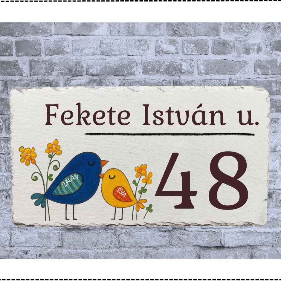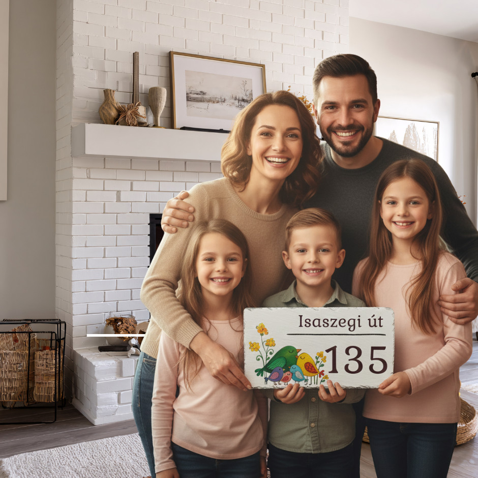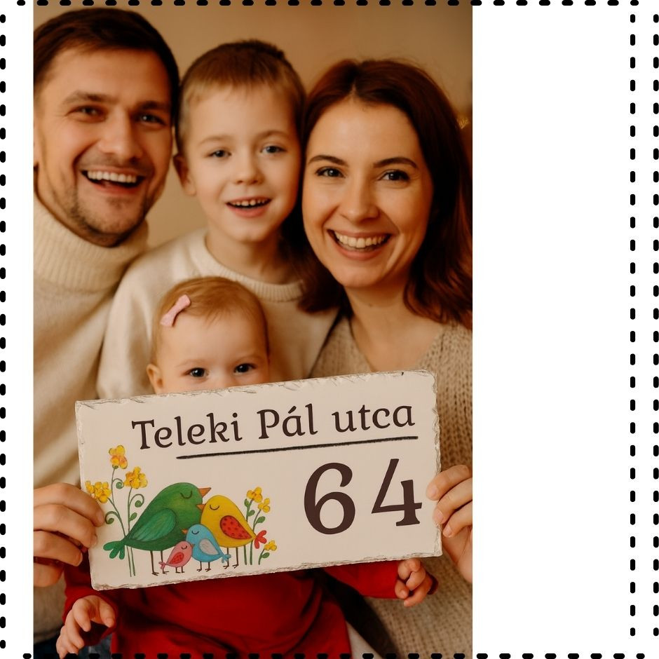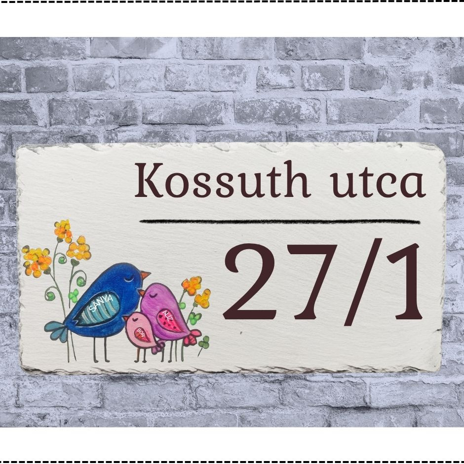 Egy madárkás házszámtábla, ami nemcsak dísz – hanem a ti családotok története, kézzel festve.