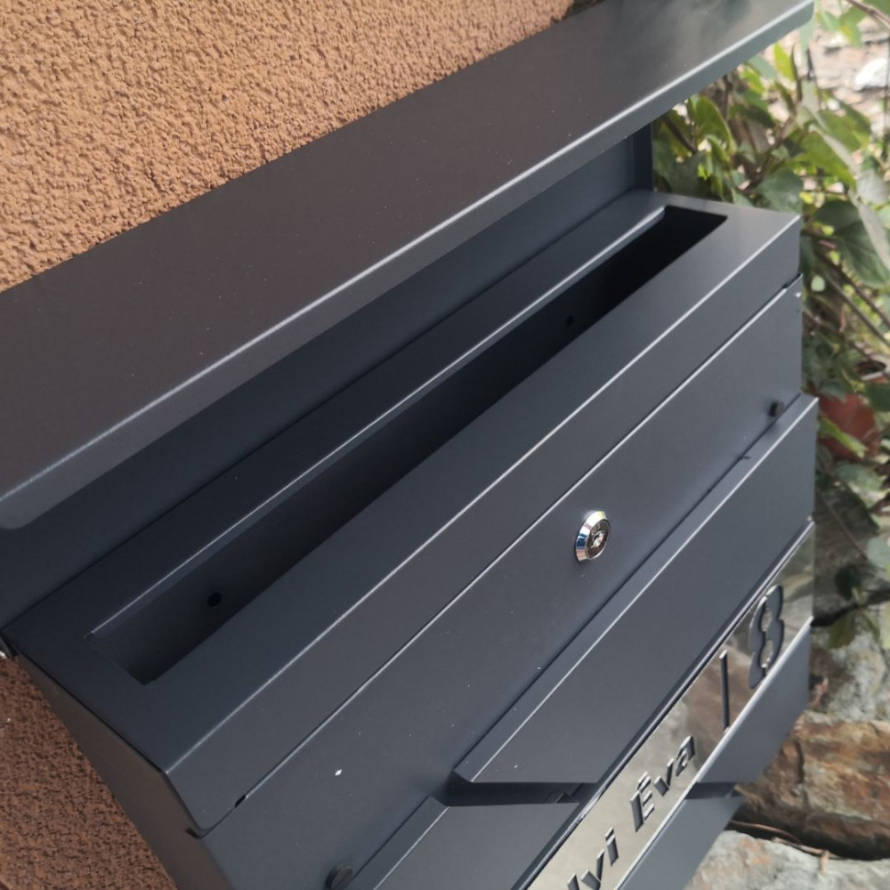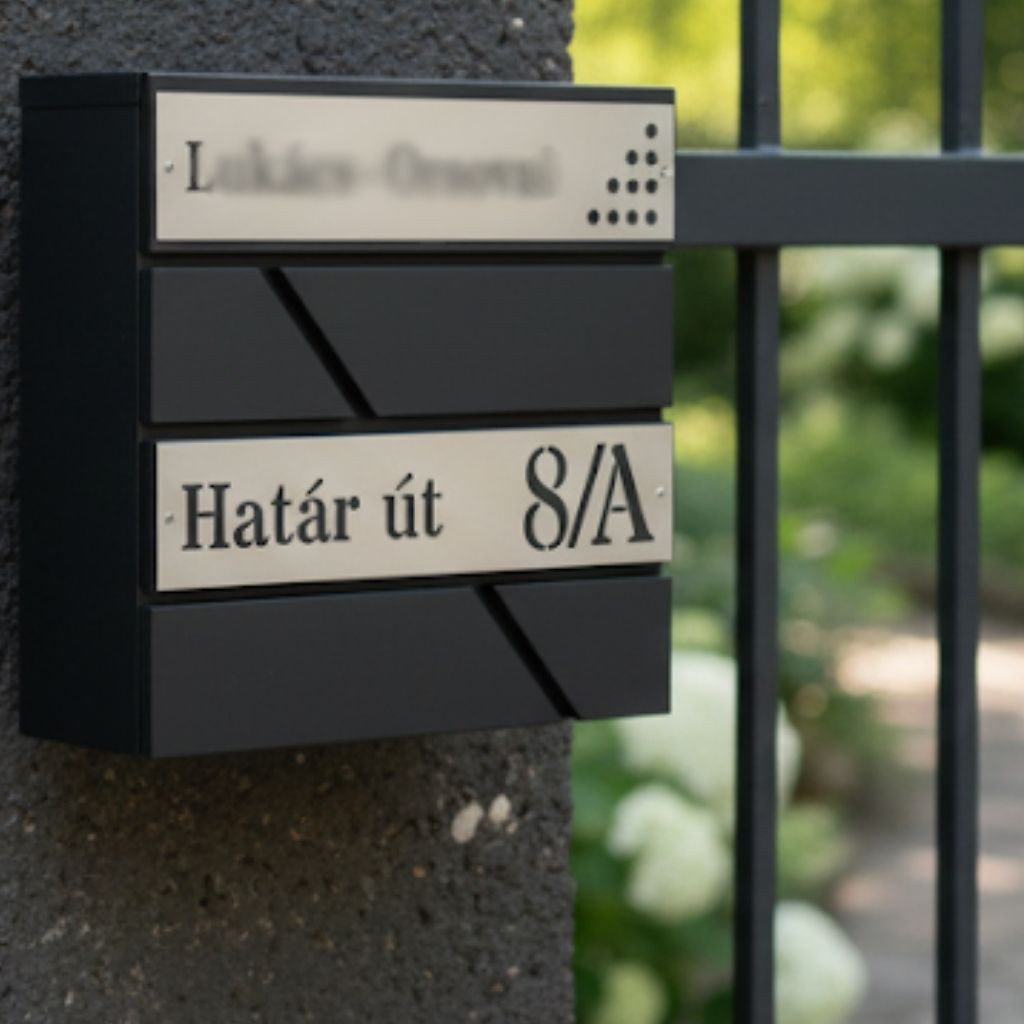 Modern feliratos postaláda névtáblával-utcanévvel-házszámmal /pöttyös modell
