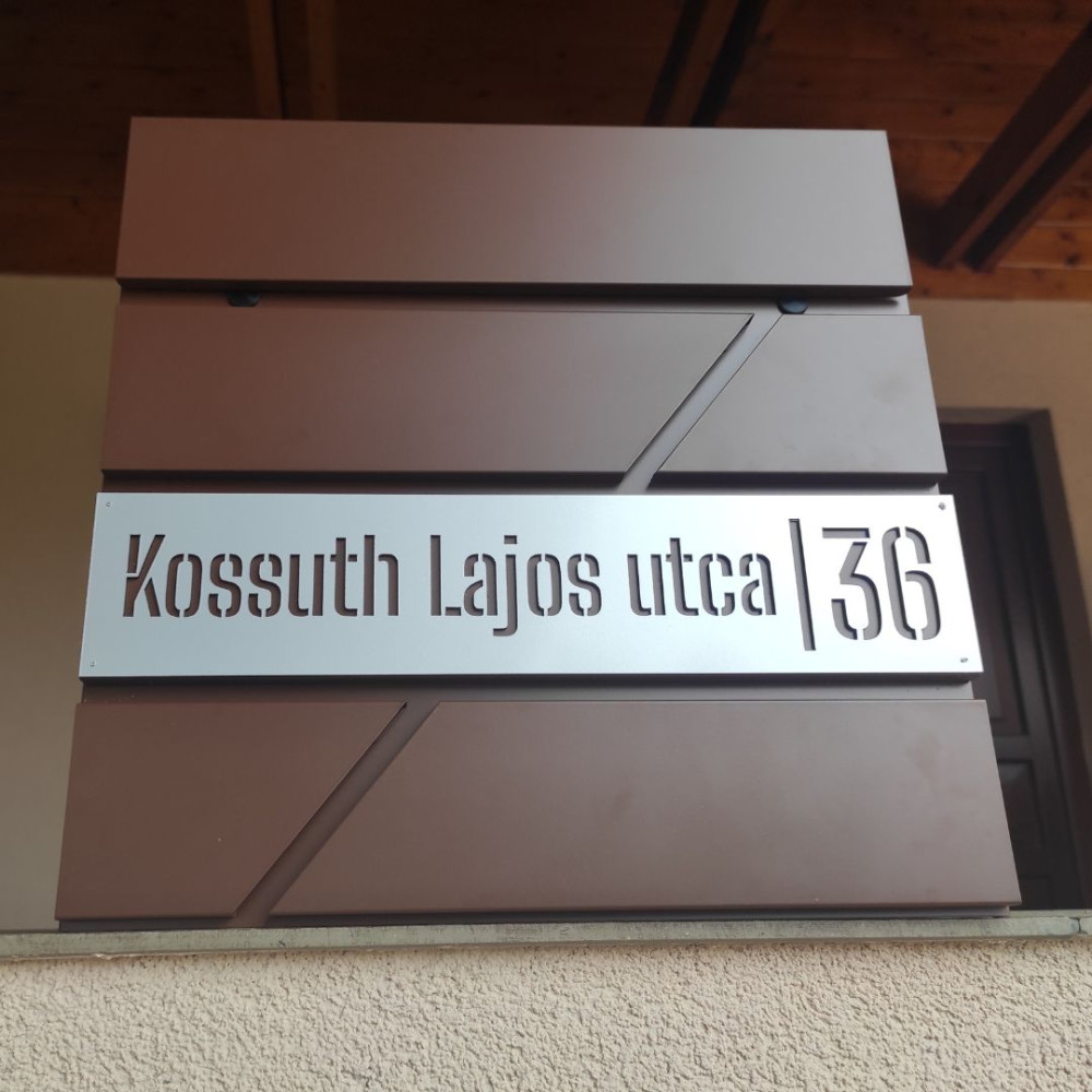 Személyre szabott: Lézerrel kivágott utcanév és házszám egyedi megrendelésre